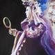 Huile sur toile 8 P (46/38) 2003. Une jeune femme vêtue de bleu attend l'arrivée du gondolier pour se rendre au carnaval. Ambiance clair/obscur.