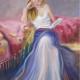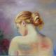 Huile sur toile 6 P (41/27) 2003. Peinture épaisse au pinceau pour un rendu impressioniste et association de couleurs aux tons pastel pour ce portrait romantique.